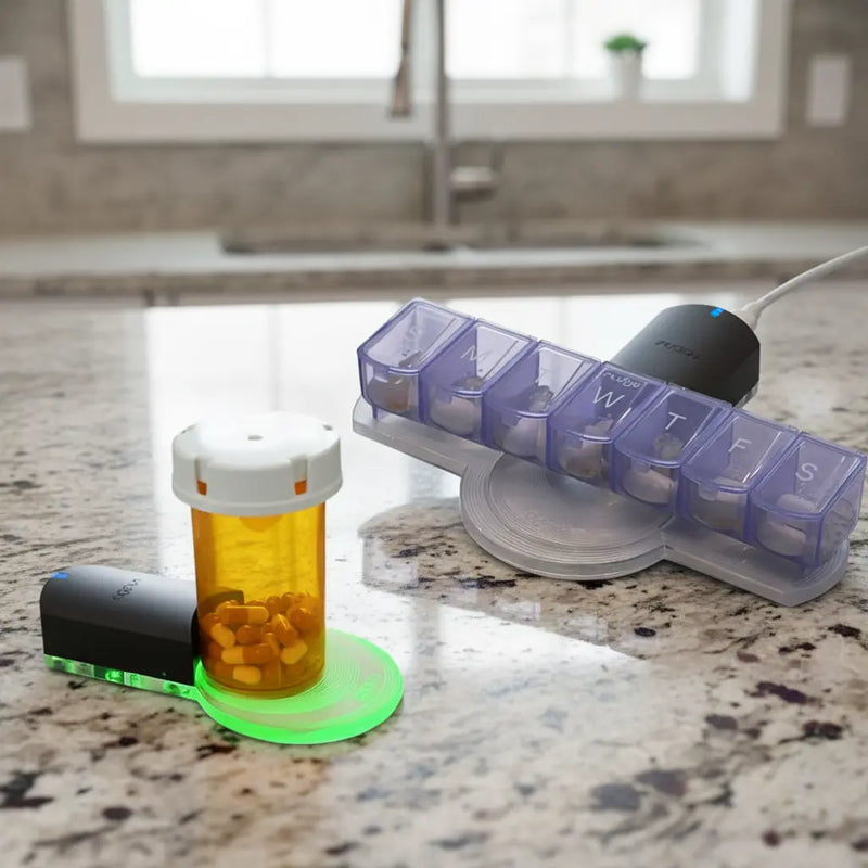 Real-time tracking + gentle green light & sound reminders + caregiver alerts. Perfect for recovery, ADHD families, and supplement habits.